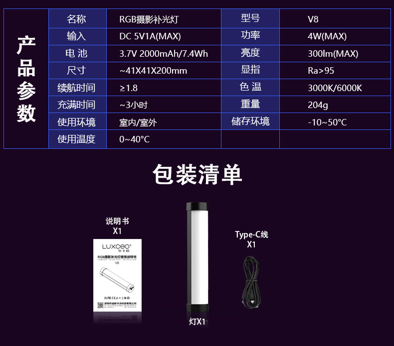 V8 RGB摄影补光灯